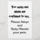 Demasiadas mortes... Adotar Spay e Neuter Flyers: a sobrepopulação de animais domésticos é um problema sério em todo o mundo. Partilha o coração ver cães, gatos e outros animais criados e vendidos em lojas de animais de estimação quando há tantos animais de estimação em abrigos de animais que precisam de casas? Quebra o coração para ver filhotes e gatinhos indesejados em nascer por causa de pessoas que não queriam se incomodar em pegar mama e papa cachorros, gatos e quaisquer outros animais mortos e castrados? Esta design é para você! O texto é "Muitas morrem quando continuamos a comprar... Por favor, Adote e Spay/Neuter seus animais de estimação."