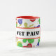 Splat! Molho de Tinta Molhada - Esta caneca única foi concebida para se assemelhar a uma superfície recentemente pintada, completada com palhetas coloridas e um rótulo de aviso com a menção "Tinta Molhada" (texto personalizável). Um design lúdico e humorístico, perfeito para artistas, pintores e qualquer um que ama um toque de capricho em sua rotina diária. A cor do interior pode ser personalizada para corresponder às suas preferências, e fique tranquila, é seguro usar e beber de.
