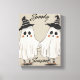 Celebrate the magic of Halloween with this enchanting stretched canvas print featuring two ghostly companions dressed in classic white sheets and striped witch hats. With rosy cheeks, striped stockings, and a hand-in-hand pose, these whimsical spirits bring warmth, charm, and a touch of mischief to any wall.