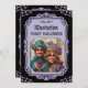 Adicione um toque de glamour gótico à sua festa de Halloween com este convite de caricatura único. Apresentando um casal veneziano malicioso vestido com o seu melhor traje de mascarada, este convite é perfeito para uma celebração assustadora e elegante do Dia das Bruxas. Personalize o convite com os detalhes da sua parte, incluindo a data, hora, local e código de vestimenta. O design apresenta um fundo preto com uma estrutura gótica, sotaques do crânio e um toque de roxo para um toque de mistério. Perfeito para: festas de Dia das Bruxas, bolas de mascarada, eventos de temas góticos.