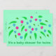 Um spray colorido de flores avermelhadas, cor-de-rosa e azuis, é impresso em convites de chuveiros de bebês para gêmeos. O texto pode ser facilmente personalizado nos formulários modelo.