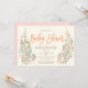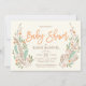 Sugestões doces de folhagem elegante tipografia personalizada elegante neste convite de chá de fraldas botânico quente e organicamente romântico. Matizes macios de menta, verdes, esbranquiçados e laranja em branco são a forma perfeita de celebrar a mãe e o bebê a ser.
