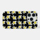 featured on a black background are pretty yellow and white Frangipani flowers in a pattern,