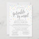Bebê "borrifado por correio", convites para uma rapariga ou rapaz, com um borrifador colorido de arco-íris confetti. Simples e doce ideia de convite de chá de fraldas para um chá de fraldas virtual com tema de aspersão. Edite facilmente para incluir as informações de reunião da sua festa e o endereço de correio de presente. Sexo neutro.