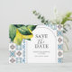 Entra no encantador fascínio da Itália com os nossos belamente elaborados anúncios de casamento de destino, com uma deliciosa borda superior de limões de aquarela, lembrando o encanto da Costa Amalfi. Ao contrário, ser cativado por um padrão de azulejo impressionante em tons vívidos de azul e ferrugem, evocando a essência do romance italiano. Esses cartões de lançamento são projetados para personalização sem esforço - basta usar nossa modelo intuitiva para usá-los com seus detalhes exclusivos de casamento. Você tem a opção de selecionar de placas impressas profissionalmente para elegância imediata ou escolher uma impressão que salve a data para mais flexibilidade. Explore nossa coleção diversificada de cartões salve a data mesmerizantes e ideias criativas de casamento em www.zazzle.com/dotellabelle. Cada design é um testemunho da excepcional arte aquática de Victoria Grigaliunas, transformando seu anúncio de casamento em uma obra-prima de design e romance.
