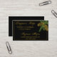 Este cartão de visita elegante é perfeito para o seu fazer de velas, etiqueta de jarro de comida, ou outro projeto do tipo "faça você mesmo". O fundo é preto e, no canto superior direito, há um gráfico de dois pínus em ouro com agulhas de pínus em verde-azuleza.