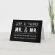 "Amor preto e branco corajoso & obrigados" "Sr. & Sr."; agradeça a amigos e a família sendo parte de seu dia do casamento alegre. Esquema de cores preto e branco. Personalize com seus nomes e data do casamento. Adicione uma nota especial interna ou mesmo uma foto. Contacte-me com todos os pedidos ou perguntas especiais. Obrigados!