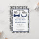 Convite do chá de casamento do Sr. e da Sra. Casal do damasco. Este convite do na moda caracteriza uma beira preto e branco bonita da cor damasco com símbolos elegantes para o Sr. e a Sra. sob a forma de uma colar azul do laço e da pérola do aqua. A cor damasco é imprimida igualmente na parte de trás do cartão como um detalhe bonito.
