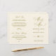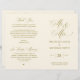 Este é o cartão do programa de cerimônia de casamento dobrável, em clássico elegância vintage, antigo tema Dourado. Ele foi projetado com sotaque de rolagem que pode ser personalizado com texto personalizado/ personalizado para seu partido noiva, detalhes da cerimônia, notas memoriais e mensagem de obrigado. ** Nota: esses programas de papel de peso de texto chegam em formato plano e exigem a dobragem para montagem.