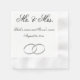 O guardanapo de casamento com o título "Sr. & Sra." O nome da noiva e o nome do noivo são personalizáveis junto com a data. Na parte inferior está uma imagem de anel duplo.