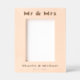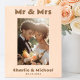 Fotografia gravada em madeira com o texto "Sr. e Sra." no topo e nomes personalizados e data de casamento no fundo.
