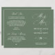 Este é o cartão do programa de cerimônia de núpcias dobrável, no clássico sábio verde-rústico. Ele foi projetado com sotaque de rolagem que pode ser personalizado com texto personalizado/ personalizado para seu partido noiva, detalhes da cerimônia, notas memoriais e mensagem de obrigado. ** Nota: esses programas de papel de peso de texto chegam em formato plano e exigem a dobragem para montagem.