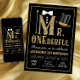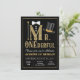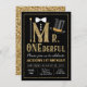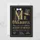 Convite de aniversário maravilhoso, com gravata de bolso, chapéu de cima e bengala, com palavras reluzentes em ouro e preto. Este belo convite de aniversário do Sr. Onemagnificy é facilmente personalizado para o seu evento simplesmente acrescentando os seus detalhes. Este é um design impresso sem brilho real, etc.
