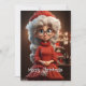 Bonita Sra. Claus com óculos vestindo um vestido vermelho. Feliz Natal!