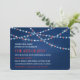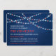 Este convite patriótico é legal para a festa de 4 de julho, Dia do Memorial ou Dia do Trabalho. A design é legal com estrelas vermelhas, brancas e azuis nas luzes das cordas. O fundo é um azul escuro texturizado. Que convite divertido para os seus hóspedes receberem pelo correio!