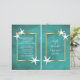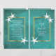 Starfish branco em papel branco manchado em folha de verduras modernas estilo livreto dobrado praias cerimônia de casamento e programa de festas com uma estrutura dourada sobre fundo azul-marinho escuro e estrelas-do-mar brancas nos cantos. Esta elegante design de casamento de verão faz parte de um casamento ou coleção e é um modelo perfeito para um casamento de verão de destino de praia. Você terá que dobrar no centro para ter um programa dobrado. Escolha apenas o tipo de papel de valor à medida que ele se dobra bem.