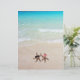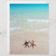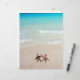 Noiva de peixe estrelado imprimível e papel de vazio para impressão seus próprios convites ou anotações. Uma cena de praia de água azul-oceânica e areia cobrir o fundo com duas estrelas-do-mar de mãos dadas no fundo.