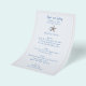 Modelo de menu casal de Starfish para uma recepção de casamento à beira-mar. Azul-cinza pálido com texto azul escuro, este modelo de menu de barato tem duas estrelas marinhas no topo para representar a noiva e o noivo. Use também as linhas de texto para incluir a data e o local do evento, o título do menu - para a ocasião - e adicione facilmente todas as seleções de comida no formulário de parágrafo. Usar espaços onde for necessário para nivelar a redação. O texto é o estilo moderno de fonte impresso na caligrafia. Uma borda fina de linha bege envolve o texto e o design é o melhor neste tamanho de papel. Pelo menos 25 menus devem ser solicitados de uma vez.