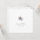 Convites de casamento de praia de casal de Starfish. Cartões quadrados com duas estrelas marítimas na frente com nomes do casal e data do casamento. Todo o texto do convite está no verso, em modelos fáceis de usar. O fundo está coberto por estrelas brancas do mar atrás do texto que é marrom. Atualize o papel conforme desejar.