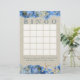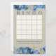 O quente olhar convidativo de burlap com estrelas-vivas e lindos hydrangeas azuis imprimidos com cartão de bingo design para um divertido jogo de chá para felicitar qualquer chá de panela ou chá de casamento no estilo da praia rustica.