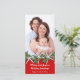 Saudações climáticas tropicais para o período de férias. Adicione uma foto da família e uma saudação personalizada e assinatura em branco a vermelho a este cartão com fotos brilhante e vertical. Starfish e holly border para aqueles que vivem em um clima quente.
