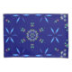 Este trabalho de arte apresenta um padrão de abstrato vibrante e simétrico contra um fundo azul índio profundo. O design combina elementos florais e geométricos, com formas pétais luminosas dispostas em formações radiais, parecidas com flores estilizadas ou estereótipos. Essas pétalas brilham em tons de azul elétrico com sutis contornos verdes, criando um sentido dinâmico de profundidade e energia. Espalhados entre os motivos maiores estão pequenos aglomerados de órbitas iridescentes, semelhantes a bolhas em matizes arco-íris - vermelho, teal, rosa e verde - acrescentando um toque lúdico e futurista. No centro da composição está uma formação caleidoscópica em forma de mandala composta dessas mesmas esferas brilhantes, ancorando o design e aprimorando sua simetria hipnótica.