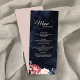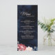 Este cardápio de casamento da Starry Night Floral inspira ou um tema de verão da meia-noite ou um tema de inverno escuro da neve, fazer um design versátil sazonalmente. A aquarela azul-marinho, quase negra, com uma estrela celeste ou floco de neve encheu o céu, combinada com o pop de flores e caligrafia rosa mínimas, certamente fala para a magia da celebração do seu casamento, independentemente da época do ano.