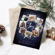 Um design de cartão festivo de feriado que apresenta oito das suas fotos favoritas organizadas em um design de coroa redonda realçado por estrelas brancas sobre um fundo azul-da-noite. "Joy" aparece no centro em tipografia com escrita de pincel. Personalize este design de colagem de fotos de feriado exclusivo com suas saudações e nomes de Natal personalizados na parte inferior.