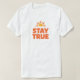 A clean, confident nod to classic ’70s design, this STAY TRUE t-shirt keeps things simple and timeless. Centered on a crisp white background, a small retro sunburst icon sits above bold, rounded sans-serif lettering, creating a balanced composition with strong visual presence. The flat vector artwork and smooth geometry give it a modern finish while preserving vintage warmth—no distressing, no noise, just pure form and message. Easy to wear, easy to style, and built around a statement that never goes out of season.