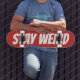 STAY WEIRD texto em negrito design skate deck