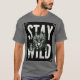 Perfect for casual wear, festivals, outdoor adventures, or styled under a denim jacket, this artwork adds a wild edge to any outfit. The combination of the leopard’s intense gaze with the empowering phrase “Stay Wild” creates a visually compelling design that resonates with free spirits and bold personalities alike.