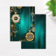 Joias, relógio de ouro com uma corrente de ouro e teclas num fundo textural verde. Estilo Steampunk.