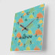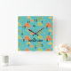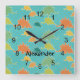 Um relógio colorido e divertido com dinossauros bonitos em fundo azul e verde pontilhado. Personalize-o com o nome do seu filho no editor de texto fácil do Zazzle. Sua escolha de redondo ou quadrado.