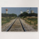 Um tiro em Sterling Kansas no lado oeste com a Torre d'água, Caminhos de Ferro, e o Elevador de grãos com céu azul. Isso é em um Quebra-cabeça.