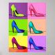 Poster no estilo do século Médio, poster de bombas estiletto / saltos altos em várias cores primárias brilhantes
