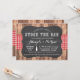 Chalk estoque o convite da festa do bar com cheque vermelho e madeira rústica. Perfeito para um noivado, um chá de casais ou uma equipe do bar, altere o texto para se adequar ao seu partido.