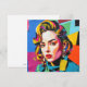 "Strasha" - Sonho de Colagem de Pop de Brilho. Uma homenagem digital moderna ao retroglam, este retrato canaliza o brilhantismo da arte pop através de cores altas, linhas nítidas e um olhar rebelde. Com um pano de fundo de colagem recortado e colado e mini figuras como acessórios, a peça interrompe a convenção enquanto celebra a individualidade e a feminilidade ousada. É elétrico, editorial e vibrante sem vergonha.