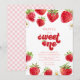 Berry Primeiro Aniversário! Convite de aniversário de morango de aquarela com xadrez rosa de volta.