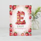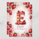 Celebre um aniversário especial com este delicioso convite de bolo de morango "E"! Este charmoso design de aquarela apresenta um bolo divertido e festivo, com a forma da letra "E", decorado com morangos frescos, gelo cor-de-rosa, e uma vela de aniversário brilhante. O fundo cor-de-rosa macio com morangos dispersos adiciona um toque lúdico. Personalize com o nome, a idade e os detalhes da festa do seu filho para uma comemoração de aniversário com um morango. Perfeito para crianças que amam festas de temas frutas ou aniversários de verão!