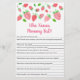 Esses adoráveis que conhecem as melhores cartas de Mamãe são uma atividade de Chá de fraldas divertida. Simplesmente passe-os durante o Chá de fraldas onde os convidados se divertirão a responder a perguntas sobre a mãe a ser! A pessoa com as vitórias mais corretas! A design apresenta coloração branca, pintada manualmente, de morangos e verde-aquosos.