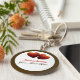 Uma imagem de morangos em forma de coração num chaveiro. O chaveiro tem modelos personalizáveis para o seu texto.