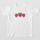 Três adoráveis morangos com "sementes" cardíacas. Adicione texto para torná-lo seu!