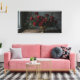 Stretched Canvas Print Dark Florals Moody, deep red roses and dark green eucalyptus leaves with gold dust accents. Size