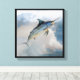Fishing fan dream, catching a big fish. Action image of big fish jumping from the sea. Great gift, man cave, office, vacation home. Beautiful blue ocean colors with lots of wave activity n. Original AI generated image with manual digital enhancements. Different sizes available, framed or undreamed! All artwork copyrighted. Thanks!