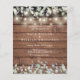 Um convite de casamento para o orçamento rústico com luzes bonito de cordas e folhas de sage e lilac que caem sobre um pano de fundo de madeira rústico e seus detalhes de casamento são definidos em texto elegante clássico. Projetado por Thisnotme©