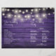Um programa de casamento rústico de na moda com luzes bonito de cordas em um fundo de madeira roxa rústica. Adicione seus detalhes especiais da cerimônia de casamento, em chic, tipografia de na moda. Dobra de mão para criar um belo programa de casamento dobrado. Projetado por Thisnotme©