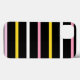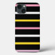 Listras clássicas em cores rosa, ouro amarela e branca contra fundo preto.
