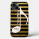 Nota musical branca em fundo listrado. Personalize o design com seu próprio nome e suas iniciais