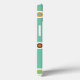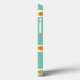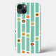 Esta capa de telefone tem um design de listras azuis retrô dos anos 70 interrompido por círculos em castanho, laranja e verde.