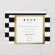 Convidado de casamento quadrado moderno RSVP resposta / cartões de resposta com fundo de faixa preto e branco com quadro de efeito de folha de ouro.